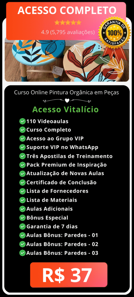 Fazendo a sua inscrição no curso Pintura Orgânica, você irá ganhar de bônus aulas adicionais de pintura em paredes.